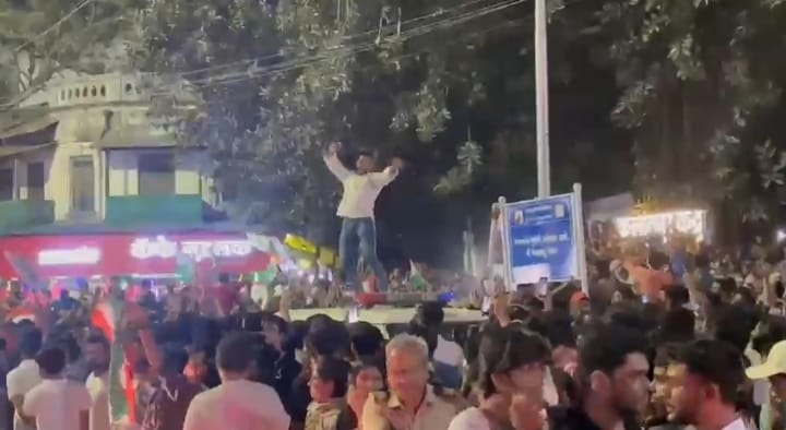 पुणे: भारतीय क्रिकेट संघाच्या विजयानंतर शहरात जल्लोष सुरू होता. मात्र काही जणांनी उन्मादातून पोलिसांच्या गाडीवर चढून अश्लील डान्स केला.
