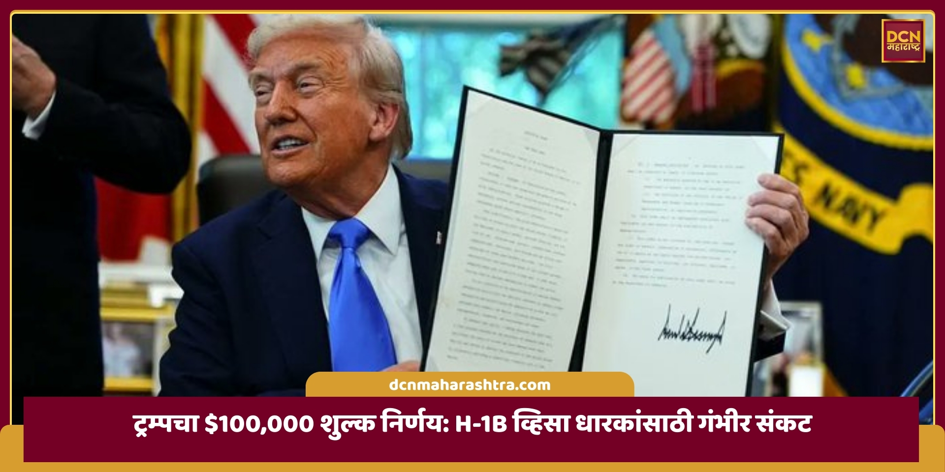 अमेरिकेचे माजी राष्ट्राध्यक्ष डोनाल्ड ट्रम्प यांनी 19 सप्टेंबर 2025 रोजी एका निर्णायक जाहीरनाम्यात H-1B व्हिसा अर्जावर $100,000 वार्षिक शुल्क लावण्याची घोषणा केली आहे. हा निर्णय 21 सप्टेंबर 2025 पासून लागू होईल. यामुळे हजारो भारतीय H-1B आणि H-4 व्हिसा धारकांना अमेरिका परत येणे अत्यंत कठीण होईल. (In a dramatic policy shift, former U.S. President Donald Trump has announced a new regulation imposing a $100,000 annual fee on H-1B visa petitions for specialty occupations. This new fee, which applies to individuals seeking to enter or re-enter the U.S., will take effect on September 21, 2025. The move has caused widespread panic among thousands of Indian H-1B and H-4 visa holders currently in India, many of whom now face the risk of being stranded, as the deadline and strict regulations could potentially bar their return to the U.S. without paying the hefty fee.)